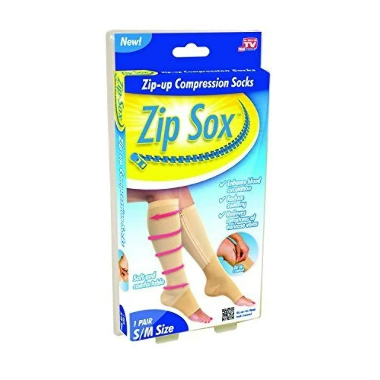 Medias de compresión con cierre que mejoran la circulación sanguínea y reducen la hinchazón en las piernas. Alivian los síntomas de las várices y son suaves y cómodas para usar todo el día. Talla S/M.
